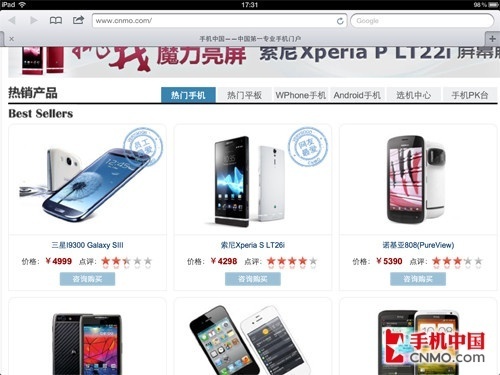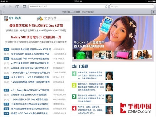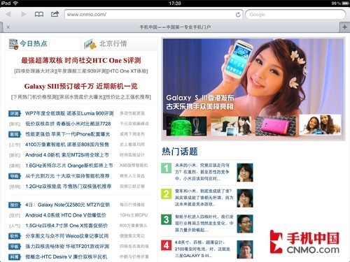 Safari是iPad内置的浏览器,对于应用的UI我们就没必要介绍了,肯定是全新iPad的细节更加完美,但对于网页浏览的细腻程度,我们还是有必要通过实际截图来向大家说明一些问题的。