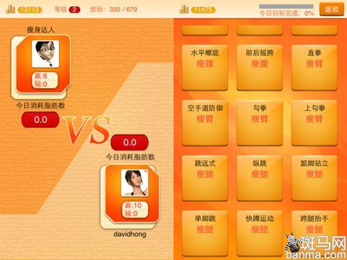 为了满足不同女性的瘦身需求,系统还提供不同的运动类型,如瘦腰、瘦臀、瘦腿等。用户还可以把自己的锻炼结果分享给朋友,看看到底谁是减肥达人,让朋友们一起爱上运动。
