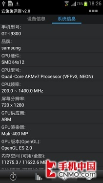 同样作为四核机型,三星Galaxy S III采用的是自家研发的Exynos 4412处理器,其主频为1.2GHz,同样为Cortex A9架构,并搭载了Mali-400 MP图形处理器。