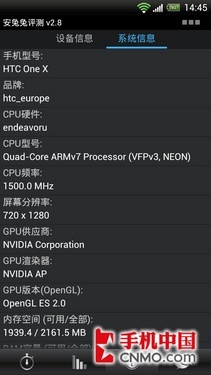 四核机型中HTC One X采用的是NVIDIA研发的Tegra 3处理器,Cortex-A9架构,主频为1.5GHz,配备12核GeForce GPU。