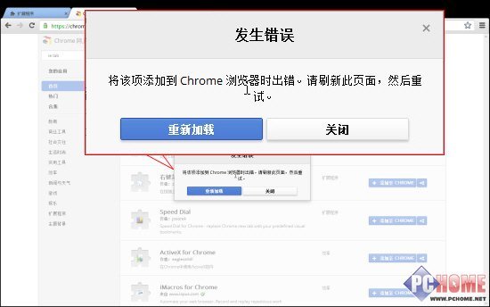接着说点不足之处,在使用过程中发现,Metro环境下,Chrome的扩展无法使用。虽然能够登陆应用商店,但是在安装时会报错;即使在桌面环境下正常安装上的扩展,切换到Metro后也一样会被过滤掉。幸好flash不在此列,各种flash内容都可以正常浏览。