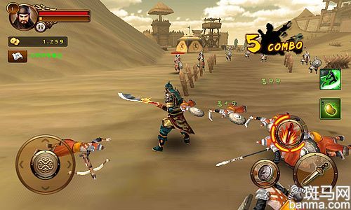 游戏采用的是全3D画面,不过画面的显示效果并不是很理想。角色的建模还算过得去,身上穿的盔甲以及所持的武器细节 刻画还是比较突出,敌兵的装扮也比较丰富,不会出现清一色的“大众脸”(虽然事实上我们也看不清楚他们的脸)。战斗时武器打在敌人盔甲或者盾牌上会产生火 花,释放技能时也有比较绚丽的光影效果。场景方面整体的古代中国风感觉把握还算到位,光看画面可能会误以为是中国的制作商开发的游戏。不过在细节方面就差 强人意了,地面贴图粗糙,感觉比较模糊,几乎没有纹理效果,在沙漠和草地场景尤为明显。游戏的BGM效果不错,在菜单选项中的曲子中国风很浓,配上水墨风 格的背景,仿佛是在玩一款武侠游戏。游戏进行时音乐就转变成以急促的鼓点为主旋律的配乐,让战斗的紧张感大增。