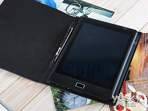 除了这些配件之外,在产品上还有两件非常高端商务的配件,磨砂皮套和电容手写笔,这两样配件可以说直接使欧达P801W变为了高端商务平板。
