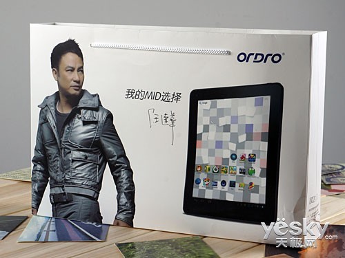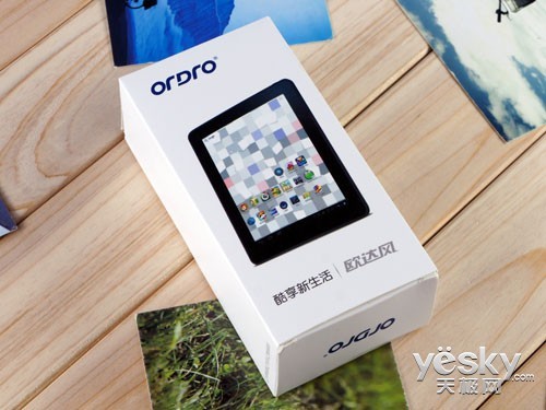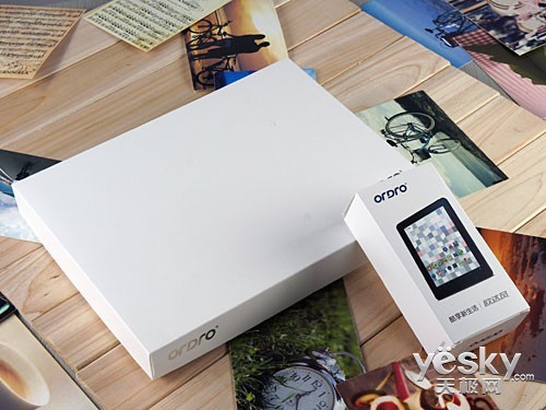 配件盒相对来说反而比包装盒显得更华丽一点,配件盒上印有Ordro的LOGO和欧达风平板系列产品的图片,而且小巧玲珑,非常精美。