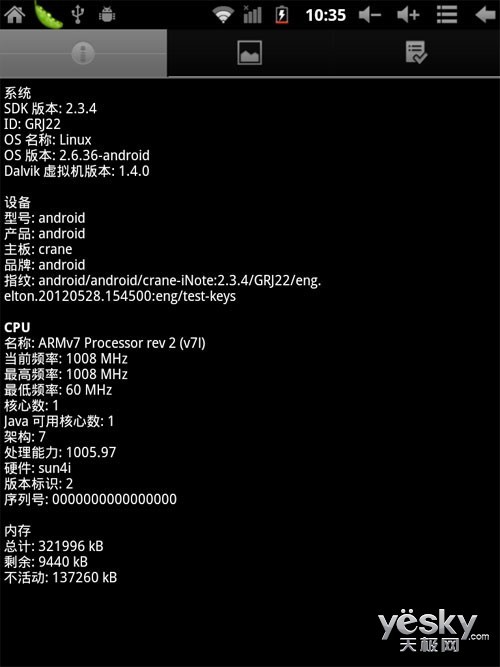通过查看,我们确认了其参数,内核版本为2.6.36,而系统版本为2.3.4,究竟为什么还会使用较老的固件和系统,小编不得而知,在这方面恐怕需要厂家再去进行改进了。