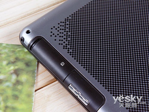 同样的,在机身背面的顶端另一侧设有机器本来就不多的按键,返回键和功能键,这些按钮对于Android系统来说起到了良好的辅助作用,在按键旁边则是TF卡卡槽,设有胶质的盖子,不用的时候避免尘土进入。