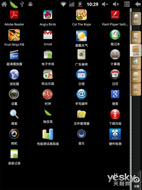 应用菜单界面与Android系统倒是完全一样,对Android熟悉的朋友可以操作的得心应手。