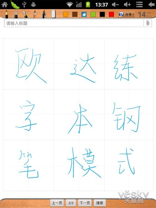 练字本功能,由于欧达P801W电容笔和屏幕能让用户感受到真实的纸笔感,所以特别设置了练字本功能,让你在闲暇之时也能练习字体。