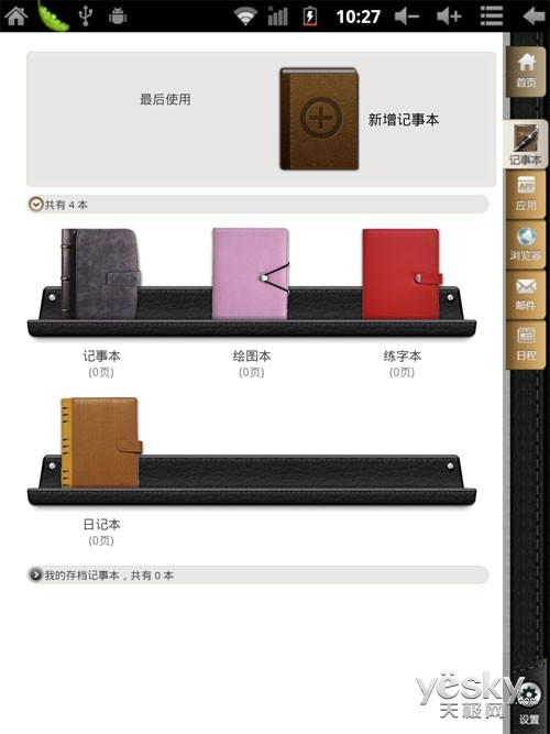 在主界面的右侧,第二个选项卡就是记事本的功能,在这里欧达为我们预设了四个常用的笔记本功能,用户可以根据自己的需要进行添加或删除。
