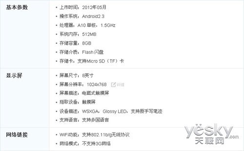 从参数中我们能够看出,欧达P801W是今年五月才上市的新品,但是采用的却不是最新的Android 4.0系统,而是采用了较为成熟稳定的2.3系统,这一举动可能是为了让系统更为稳定,符合商务人士的追求而设定的,当然这是小编自己猜测的。性能上来看,欧达P801W采用了A10架构的单核CPU,主频高达1.5Ghz,单核平板中,性能算是非常不错的。