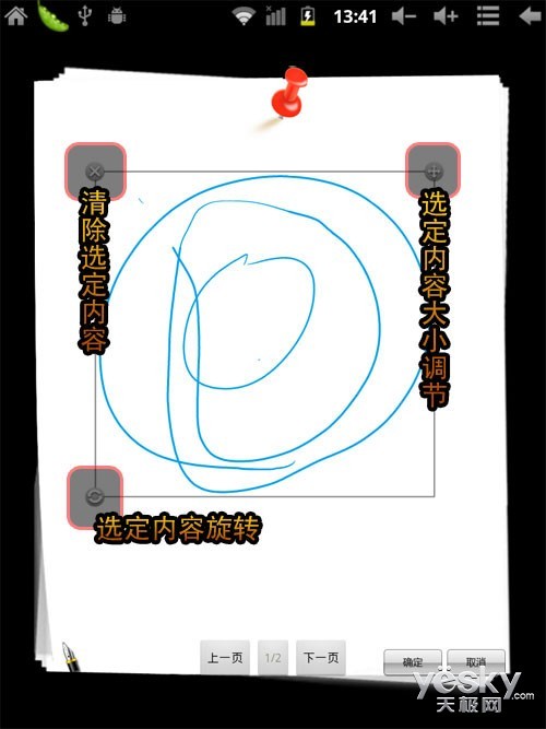 通过边框的控制钮,我们可以进行清除、旋转和缩放的编辑,这种方便的操控是过去任何平板都不能同日而语的,可见这款产品的商务程度非常之高。