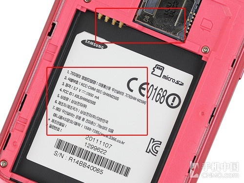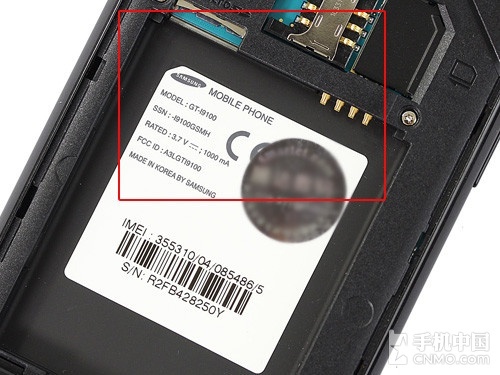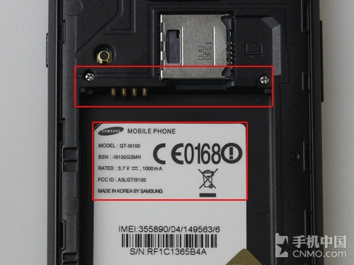 与欧版不同,韩版I9100的电池触点在左边,SIM卡槽在右边,固定的金属片可以将SIM卡一半覆盖,内存卡槽则在SIM卡槽的下方。了解这些之后我们再来看一下第一幅图中的I9100,虽然它的电池仓标贴是欧版的,但电池触点、SIM卡槽、内存卡槽的结构和位置却是韩版样式,由此可以证明它就是由韩版改装而成的欧版机。所以,大家在购买时也要仔细观察这一部分,以免上当受骗。