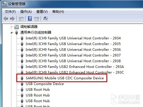 首先要做的就是为电脑安装三星手机驱动,安装完成后将手机连接至电脑,在设备管理器中打开上述下拉菜单,如出现红框圈住的标识则证明安装成功。