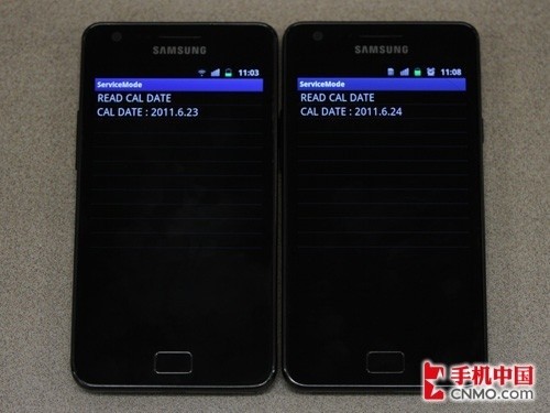 操作完成后,我们就可以看到查询结果了。如上图所示,屏幕上方会出现两行文字,其中第二行CAL DATE后面的2011.6.23和2011.6.24就是这两部手机的生产日期。总体来看,这个查询方法既简单又实用,而最终结果也相对比较可靠。