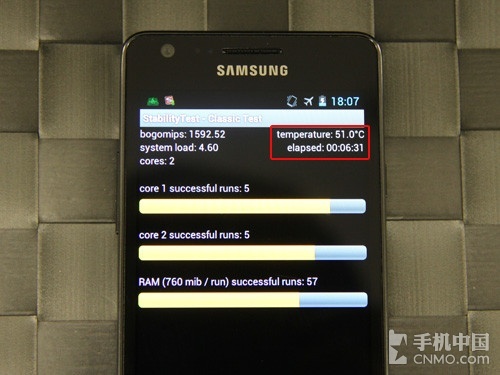 通过上文,我们对I9100的外观和配置做了一个简单的回顾。虽说现在已有两款四核新机上市开卖,可从I9100依旧热销便能看出,双核机依旧是目前的主流。不过,再热门的手机也会存在这样或那样的缺陷,I9100也无法逃脱这个命运,而其中反映最多的便是发热问题。下面,小宇就通过测试软件来向大家展示一下I9100的发热程度。