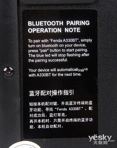 低音炮侧面贴着蓝牙操作指引