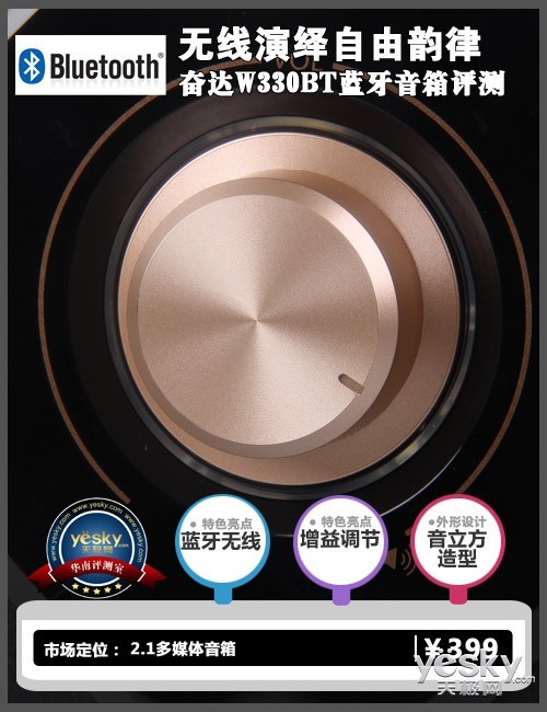 【天极网华南葛晓波】近日登陆深交所成功上市的奋达科技,成为国内首家蓝牙音箱概念股。而推出的首款2.1多媒体蓝牙音箱就是W330BT。在2.1音箱的基础上加入蓝牙模块,既可以有线连接作为电脑传统的外放使用,通过蓝牙无线又可匹配周边数码产品,如手机、平板电脑等。