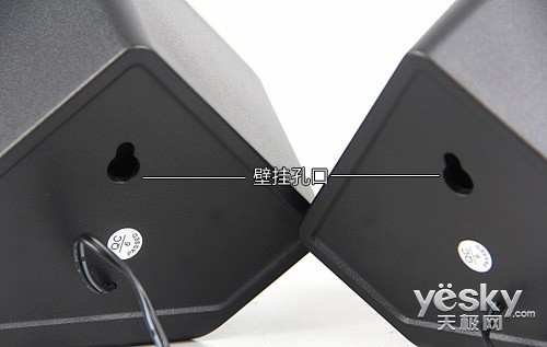 背面上方设有两个壁挂孔口,用户可以把卫星箱挂在墙上,放在显示器两边,美观大方。