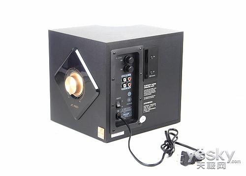 电源线和接口,很多低音炮都会设置在背部。不过这是W330BT低音炮的另一侧面。