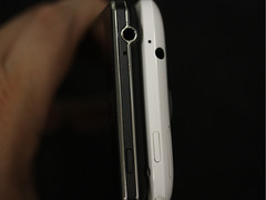 这两款手机的顶部设计有着很多相似之处,比如LOGO的位置设计,前置摄像头的位置都大同小异。唯一不同的是听筒设计,HTC One X的听筒设计可谓是独具匠心,针孔式设计在保证通话音量的同时又减少了灰尘的进入。而LG P880的听筒设计就比较保守,而且宽度和LOGO一致。