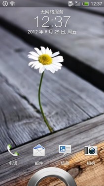 下面先看看这两款手机的解锁界面。LG P880的解锁界面十分简洁,屏幕中间一个解锁小图标。实际解锁操作只需按住屏幕任意位置拖拽即可,十分方便。而HTC One X采用的为Sense 4.0的UI界面,有解锁圆环,除了能够正常解锁屏幕以外,把圆环拖至相应的快捷方式上即可解锁屏幕自动进入该功能。