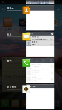 对于智能手机来说,多任务处理已经是家常便饭。尤其对于这两位四核手机,多核心造就了多任务处理优势。对于后台,这两款手机都有各自的进入方式,HTC One X是有独立的后台键,即屏幕下面第三个按键,点击即可调出后台界面。对比One X,LG P880的设计就比较保守,屏幕下面的HOME键,长按即可调出后台界面。从上图看出,One X的后台界面十分的文艺,采用3D效果设计,关闭后台只需要把对应的小页面向上一划即可,操作感觉十分给力。
