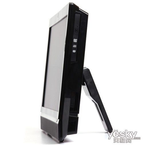 总体上讲该机的外观设计较为简洁,侧面的接口以及背面的接口设计并不多,对于用在商务应用领域的一体台式机来说,相对较少,背面有一个VGA输入接口,可以把该一体机作为外接显示器,连接到其他设备上。 最具特色的设计是该机的背面的支架可以拆卸,可以选择其他类的新支架,也可以直接将其挂在墙上,十分节省使用空间,这样的设计扩展性能比较好,为用户的使用提供了便捷,俯仰角度的调节比较大,在摆放时可以更好的满足用户。