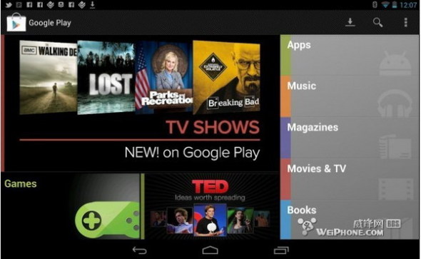谷歌将旗下所有的数字商店都整合到一款应用之中;而苹果方面则是将iTunes商店分成不同的版块