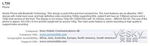 据悉,蓝牙技术联盟正式会员网站中日前意外泄露索尼LT30i的相关信息。此次泄露的消息表明,这款智能手机将采用弧形金属材质机身,采用9毫米纤薄机身设计。索尼LT30i拥有一块4.6英寸1280×720像素分辨率电容式触摸屏幕,具备索尼公司先进的Bravia图像引擎技术。此外这款智能手机还将配备一枚1300万像素后置摄像头,以及一枚720p高清前置摄像头。