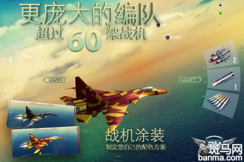 这是一款由南梦宫开发的飞行模拟游戏,主要是针对iPhone 4S以及全新iPad用户,只有在全新iPad才能真正感受到游戏的紧张刺激,体现出游戏画面的细腻,但是它同时也兼容旧设备。游戏已经达到了“游戏平台 的画质”,一共40多架喷气式飞机配置,玩家可在400万平方英尺的地图上展开空战。