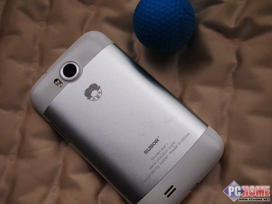 后背设置则有点类似HTC的补丁设计,上下两部分都是奶白色,而中间部分则是使用了银色金属拉丝效果,并在上面因伤了小霸王的Logo和手机型号。不得不说,小霸王这个Logo很怀旧啊。而上面的黑色大眼睛摄像头也很美型,而且还配置了双补光灯,在拍摄夜景的时候可以助力不少。