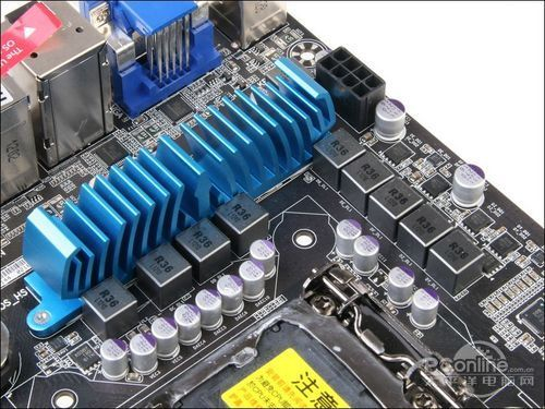 这款主板的供电部分采用了9相供电设计,由3D数字供电芯片主控,用料为超耐用的三洋固态电容、高效低发热的低抗阻MOSFET和优质的铁素电感,并且带供电散热片,保证了主板的高效稳定,为超频作好了充分准备。