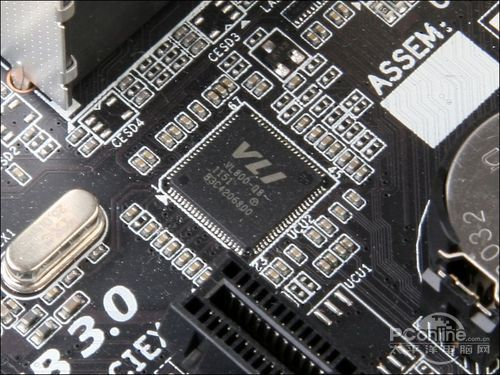 Z77原生支持4个USB3.0接口,而为了额外提供4个USB3.0接口,这款主板采用了一颗VIA出品的VLI VL800芯片。