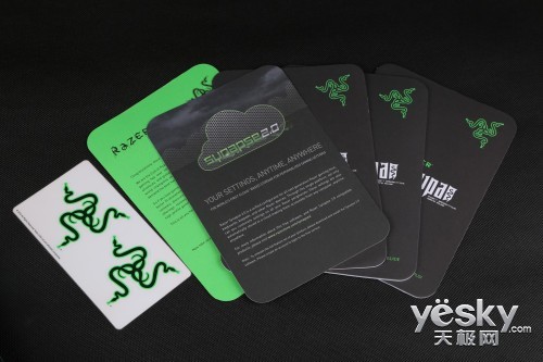 附件方面也和Razer之前的产品差不多,很多的产品资料、雷蛇贴纸,值得一提的是现在加入了Synapse云驱动的介绍手册。