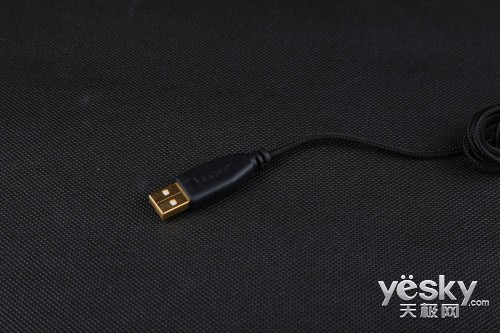 Razer Taipan采用镀金USB接口,线材为尼龙编织。