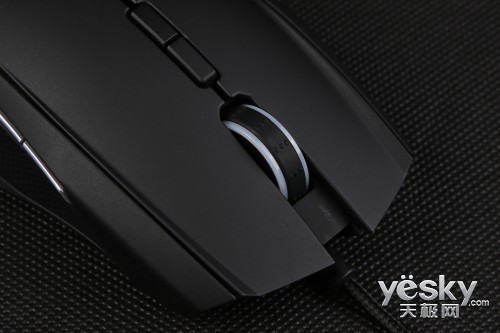 Razer Taipan太攀皇蛇的滚轮较之前有所变化,刻度感由一排排的颗粒凸出方块提供,实际使用时感觉与传统刻度滚轮区别不大。