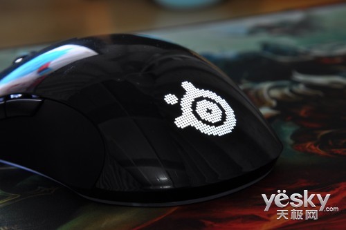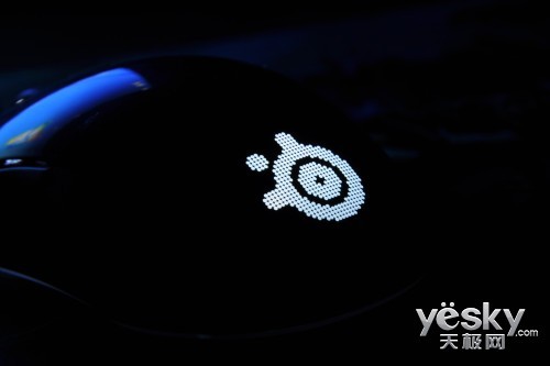 背部的赛睿LOGO与Sensei处理的一样,点阵显示,插电之后白色呼吸灯效果。