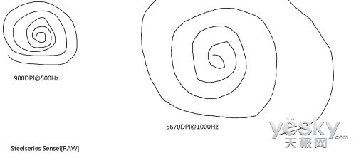 画圈测试主要衡量鼠标在各个DPI下的移动平滑程度,在最高5670DPI@1000Hz下就有点逊色了,不过好在不会有人在这么高的DPI下使用,编辑常用的900DPI@500Hz非常平滑,没有任何问题。