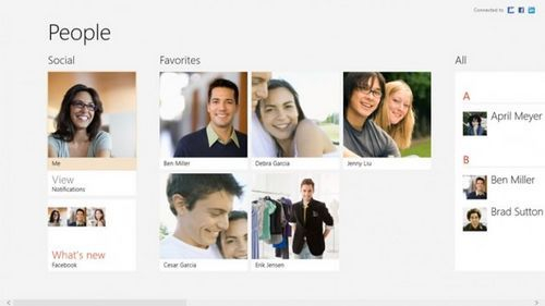 Win8 RTM系统的人脉People功能与Windows Phone系统一脉相承,可以管理邮箱、Windows Live通讯录的联系人信息。