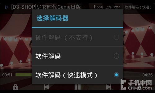 当然,我们也试图继续越级挑战1080p的全高清视频,但结果是即便使用软解,播放效果也很不理想,看来在这方面我们不能对MSM8225要求太高。