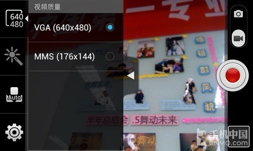 MSM8225在图形能力上较主流双核处理器有一定不足,这点其实不不从跑分就能看到。打开MSM8225手机的录像机设置界面,我们不仅没有看到1080p录像规格,甚至也没有看到720p的规格选项。