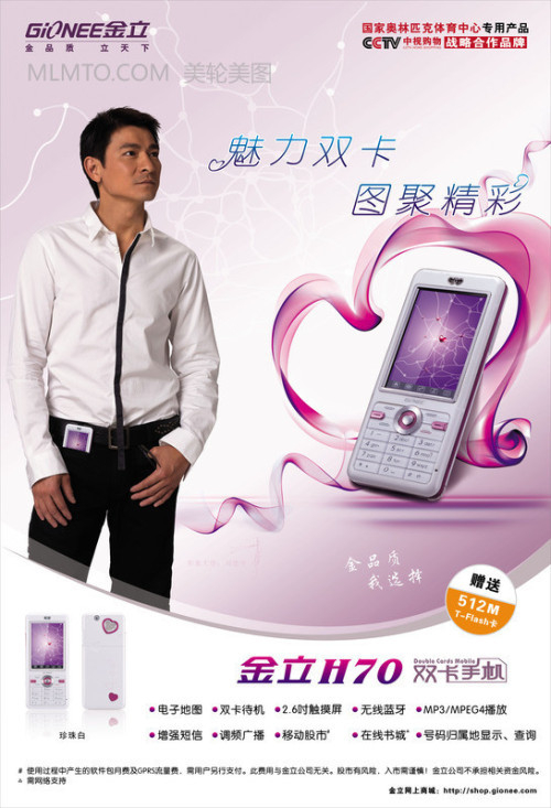 金立通信邀请过天王巨星刘德华为形象代言人,并投巨资拍摄豪华广告宣传片,进行了一系列强势宣传。在接下来两年的合作过程中,刘德华的公众影响力以及广告宣传力都为金立品牌以及销售起到了良好的推动作用。金立与刘德华保持长期稳定的合作关系,有利于双方共同开创互利双赢的新局面,对双方今后的发展有着积极的意义。