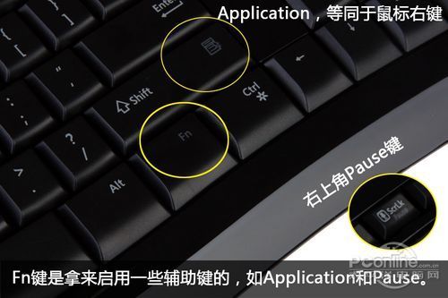 取消了的其中两个实体按键:Application和Pause键,可以通过Fn+Shift以及Fn+Scrlk键实现。
