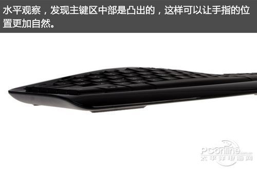这个键盘的巧妙之处就是中部凸起,尽可能让手指和手腕处于比较舒适的状态,适合长时间的打字办公等。