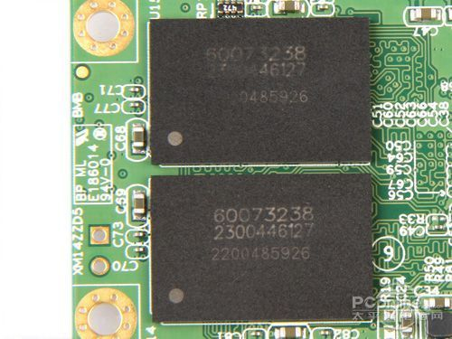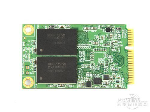除了正面的1颗主控与2颗闪存,背面还有2颗闪存,共4颗组成128G容量,由于体积有限,目前mSATA SSD最大容量局限于256G以内。