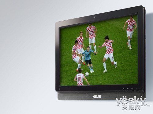 华硕ET2411一体电脑在外观的设计上,沿用了上一代ET2410一体PC的金属硬朗外形。屏幕边框虽然还是采用常见的钢琴烤漆工艺的复合材质,但是屏幕下方的外置扬声器网面及机身支架均使用坚固的金属材料,将整机营造出一种时尚的金属质感。ET2411拥有大尺寸的23.6英寸LED背光显示器,标准分辨率1920x1080,支持全高清显示,支持触控。