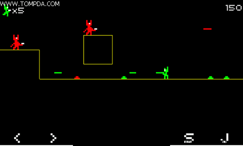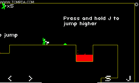游戏的操作非常简单,通过屏幕左下角的方向键控制小人的左右移动,屏幕右下角有两个键,S键控制小人发射子弹,J键控制小人的跳跃,1.3版中修改了一些图形界面并且修正了一些小的错误。
