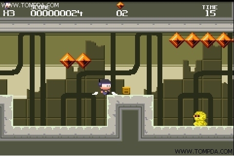 猛一看,这款游戏好像是20年前的电脑游戏,但是游戏还算是比较好玩的,你需要控制小人一直跑到终点,途中会有各种障碍和敌人等着你,玩家需要跳过这些障碍和陷阱,发射子弹消灭掉敌人。