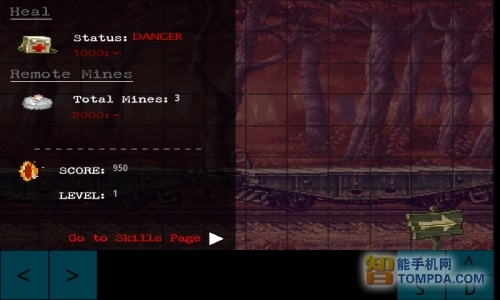《僵尸生存:特种任务》的菜单文字偏小不太好按玩家要注意多点几次,该作有普通和困难两个级别,普通级的敌人大都从屏幕两侧出来,留给玩家的攻击时间比较充 裕,困难级可就没这么轻松了,上下左右随处都可能出现僵尸的身影~这个时候一定要多发挥地雷和陷阱的威力。点击屏幕上方的地雷标志就可以给僵尸下拌子了, 俗话说好钢一定要用在刀刃上,如果只有一个僵尸出现,你还费劲炸它纯属浪费弹药,一定要等到大批僵尸过来的时候,一个小雷就统统收拾了。