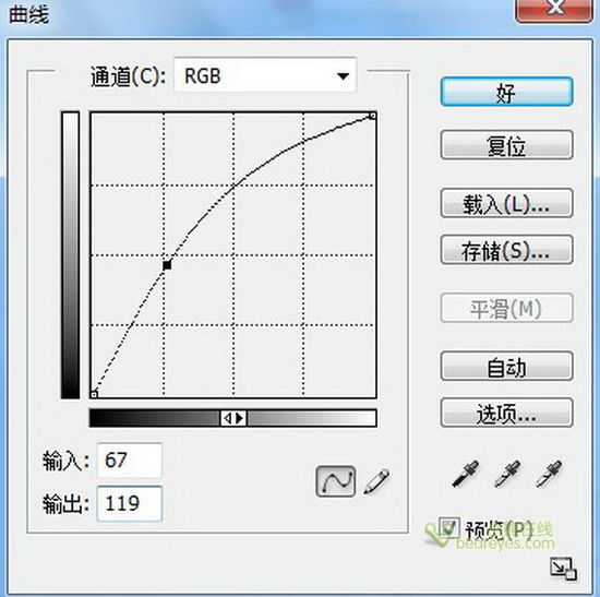 载入Alpha1通道,然后反选,返回图层面板,建立一个曲线调整层,调整曲线,即可看到效果了